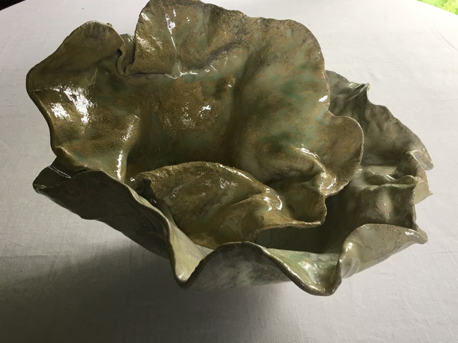 Feuilles mortes – Sculpture grès 35 x9 x10 cm –